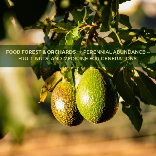 Wealth That Endures — 50% of all profits are distributed to founders. 40% of all profits are reinvested into cashflow and resilience systems. This model compounds abundance while securing the sanctuary for generations.