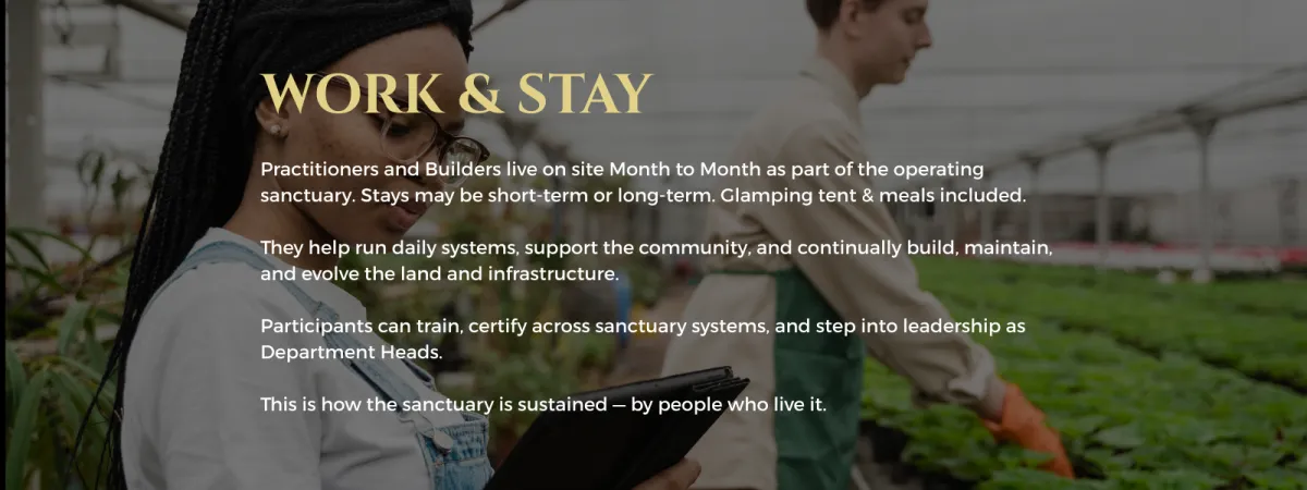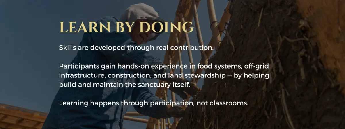 Builders, makers, growers, designers, and stewards shape the sanctuary through hands-on contribution. Creation, maintenance, and craftsmanship are honored as essential forms of intelligence and care.